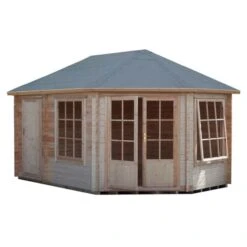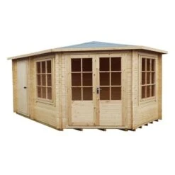 Perfectly designed for a corner of the garden, the Shire Leygrove 4.3m x 3m Corner Log Cabin Summerhouse (28mm) includes a stylish garden room and spacious side shed, so provides both a great place to relax and invaluable garden storage.