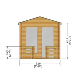 The pressure treated floor joists give the best possible lifespan for the most vulnerable part of any timber building – making rot and fungal damage much more avoidable. The part-glazed single door is complete with a quality key lock for security reasons. The single opening window to the front is of a beautiful Georgian design.. Roofing felt is included as standard. This log cabin requires a flat, level and square concrete or paved base to enable assembly. Delivered palletised in a loose component true-log form (not sectional). Front driveway delivery only. Note: This wooden log cabin is delivered untreated and requires the customer to apply a good quality preservative to the external timber surfaces immediately after installation.