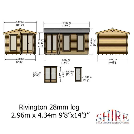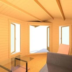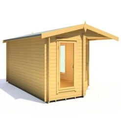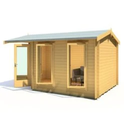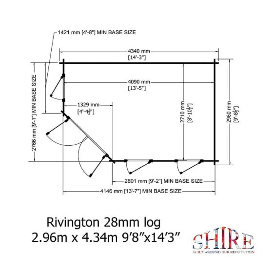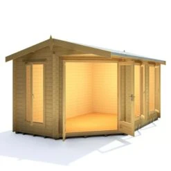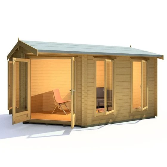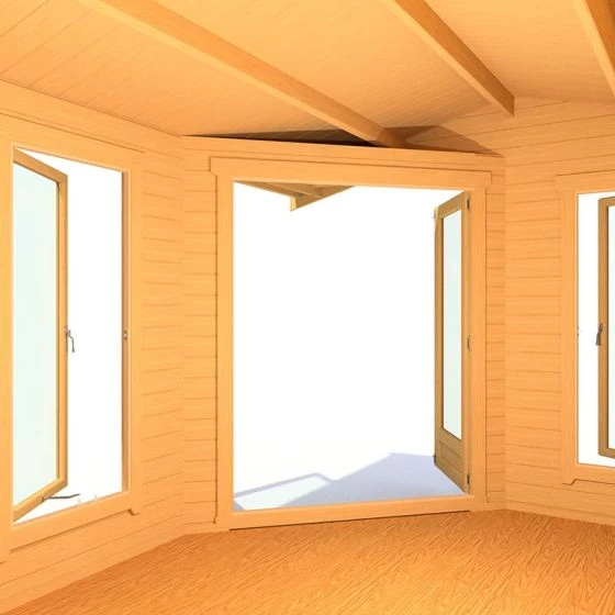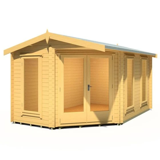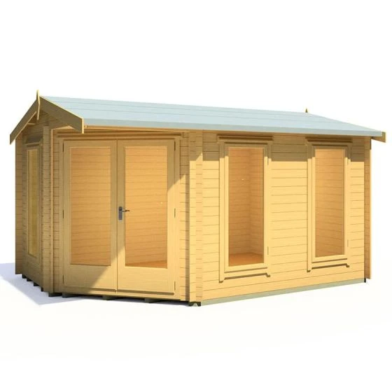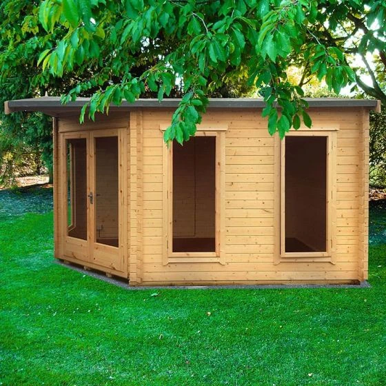 Designed to fit seamlessly into a corner of the garden, the Shire Rivington 4.3m x 3m Corner Log Cabin (28mm) is a high-performance garden building, which makes both a great home office and outdoor relaxation room.